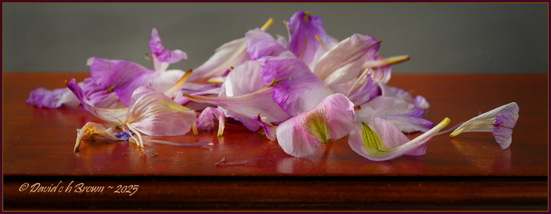 Usually when some of the flowers in a bouquet start to die, and drop to the table, the petals are taken to the garbage container. Instead of doing that, today I decided to give then a bit of "glory" before they were thrown out.....just a crazy idea of mine on a very cold and rainy day. Hope you enjoy.....Cheers!